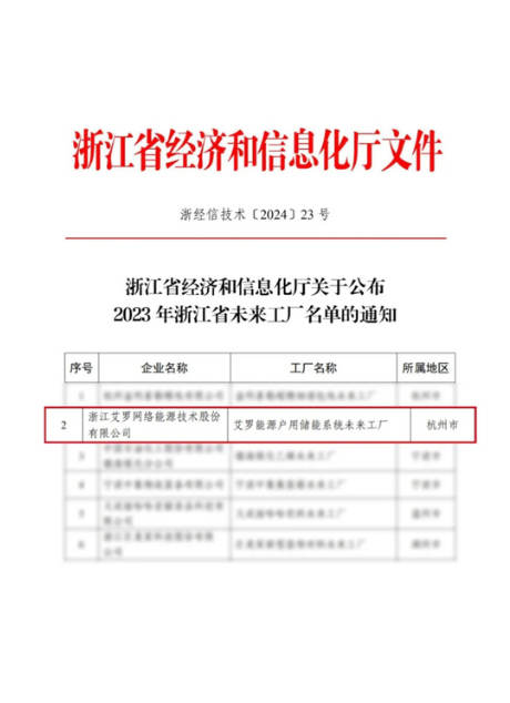 “亚星游戏官网能源户用储能系统未来工厂”上榜浙江省未来工厂